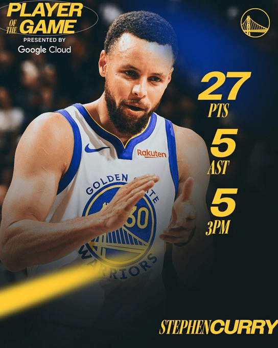 賽后,勇士官方發(fā)布斯蒂芬-庫里數(shù)據(jù)海報,并配文道:“本場最佳球員。”