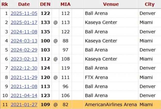 本場過后,常規(guī)熱火也終結(jié)了自己在常規(guī)賽對掘金的賽對11連敗。