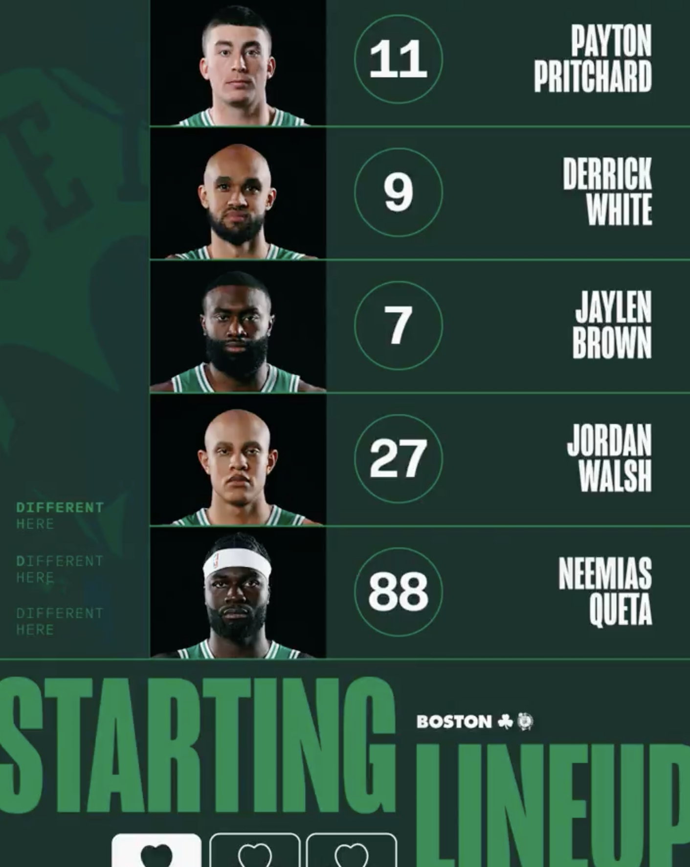 凱爾特人首發(fā):普里查德、發(fā)普懷特、德懷布朗、特布沃爾什、克塔