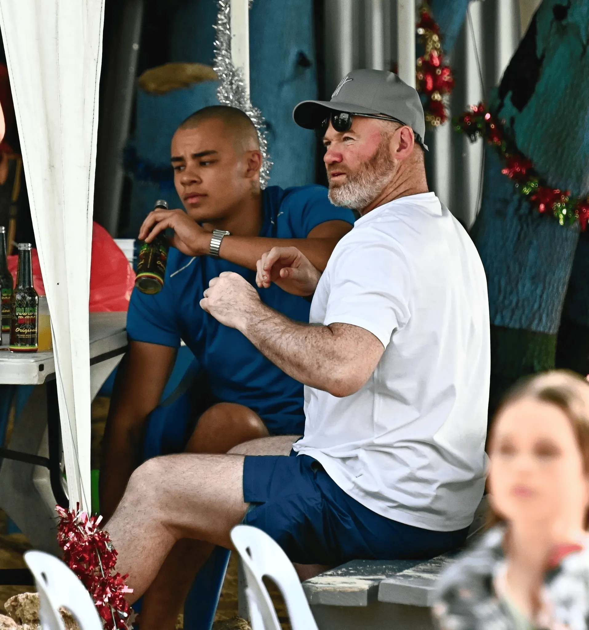 沙灘上,一場(chǎng)曼聯(lián)老友的重聚溫情上演,眾人相談甚歡。魯尼在酒吧小酌啤酒,神態(tài)悠閑放松。卡里克則與妻子莉薩相伴現(xiàn)身,手中同樣拿著一杯啤酒。大家還與幾位在沙灘上偶遇球星的幸運(yùn)球迷合影留念。