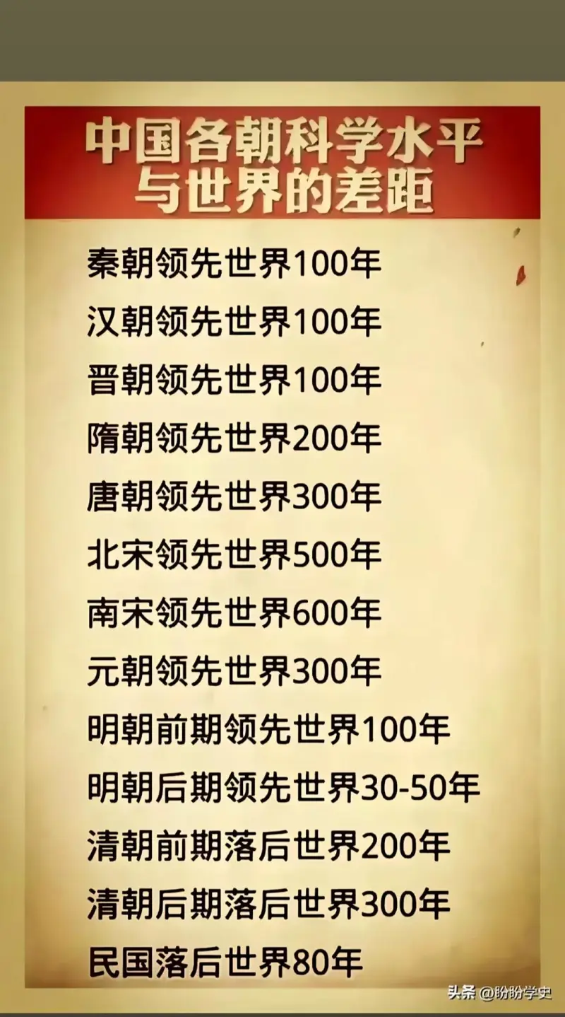 剛才刷視頻,看到這張圖,清朝上千人點贊,后世明朝后期還領先世界50年。界年從清朝前期就落后世界200年,清朝后期落后世界300年,里外里讓中國落后世界500年。