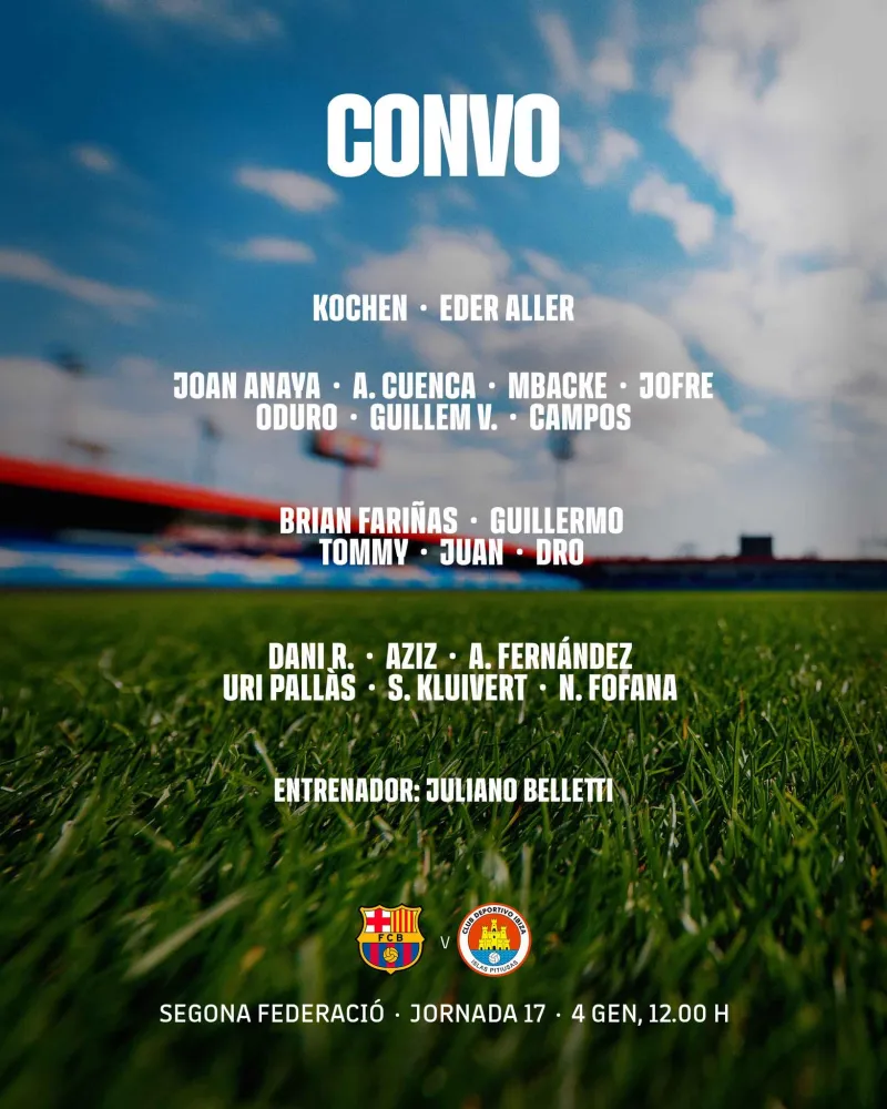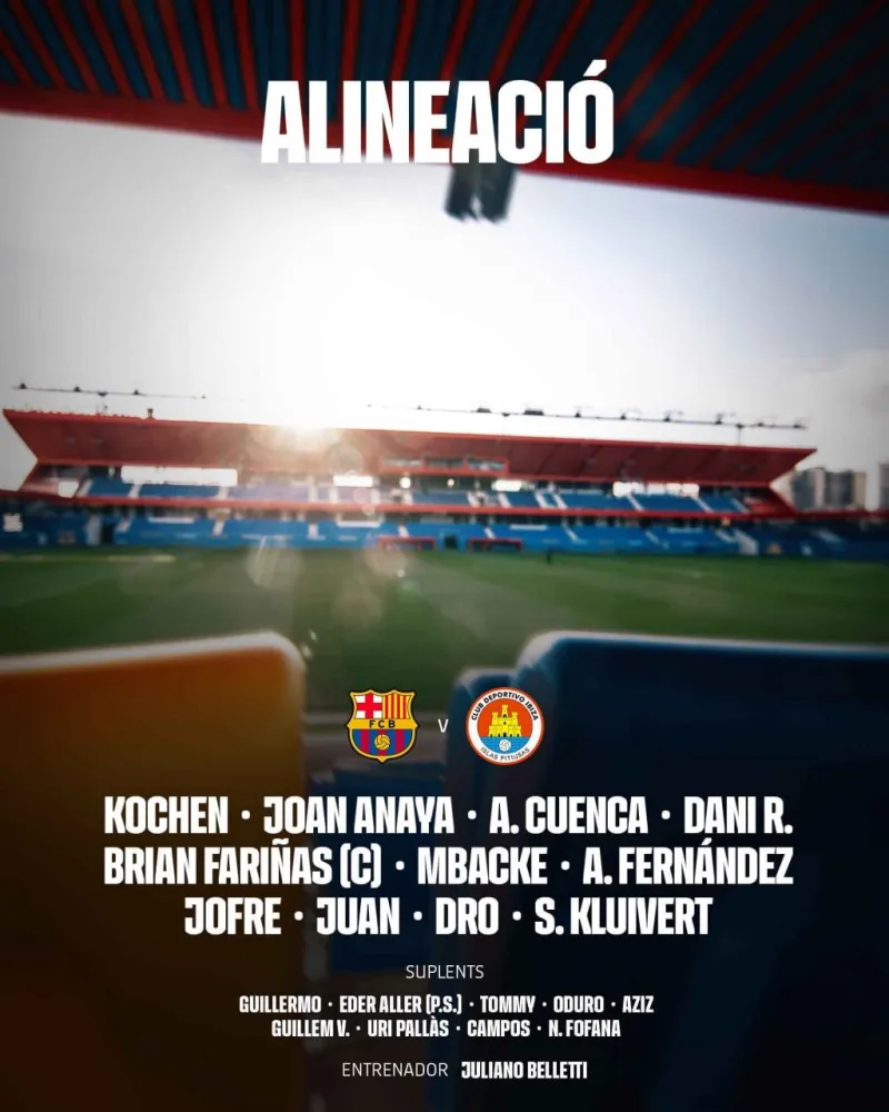 陣容:1-科欽/2-約安·阿納亞(min70, 26-吉列·維克托),12-法爾,競技5-安德烈斯·昆卡,戰(zhàn)報17-赫弗雷·托倫茨/8-法利尼亞斯,巴薩38-德羅(min46,競技 14-托馬斯·馬克斯),16-托尼(min64,戰(zhàn)報 10-吉列)/7-達尼·羅德里格斯,39-肖恩·克魯伊維特(min78,巴薩 40-努胡·福法納),30-胡安·埃爾南德斯(min46,競技 19-阿齊茲)