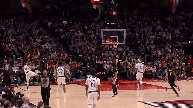 第三節(jié)比賽中,飄逸克萊高難度飄逸三分壓哨打板命中,分壓分獨(dú)行俠三節(jié)落后開拓者4分。哨打