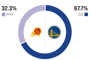 [流言板]ESPN預(yù)測明日比賽勝率:勇士高達67.7%,而太陽僅為32.3%