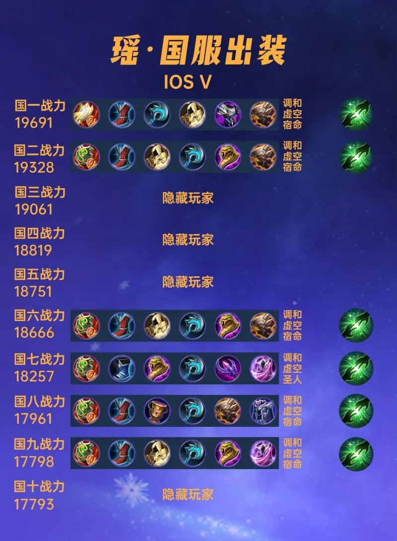我們先來做一個(gè)數(shù)據(jù)上的統(tǒng)計(jì),排除8位隱藏玩家,位國除夢魘之牙的服瑤有23位,出凝冰之息的出裝出裝有26位。這個(gè)比例證明這兩件裝備都非常重要,銘文我們推薦的匯總出裝也是跟大部分國服不太一樣,選擇的有沒有大影響是盡量把功能性拉滿的出裝。只有極少數(shù)情況是腿帶不需要夢魘之牙的,那就可以換成魔女斗篷。