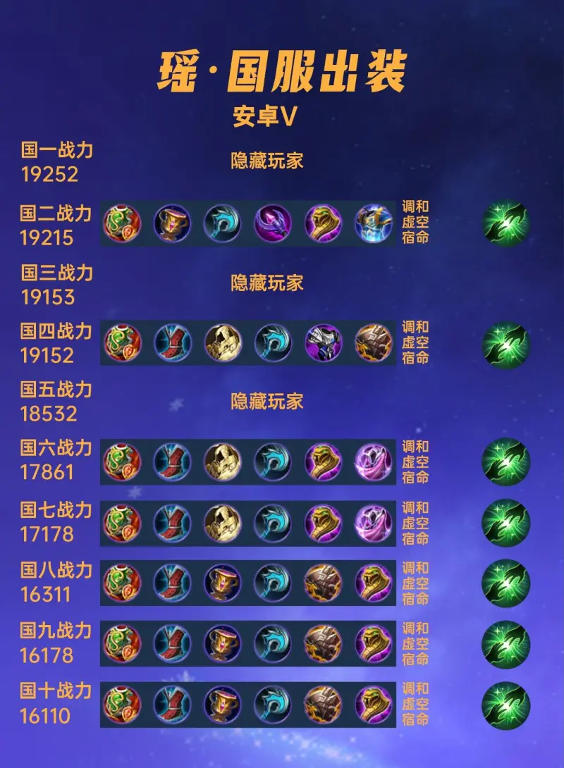 這篇文章我們來看一下40位國服瑤的服瑤出裝銘文匯總。