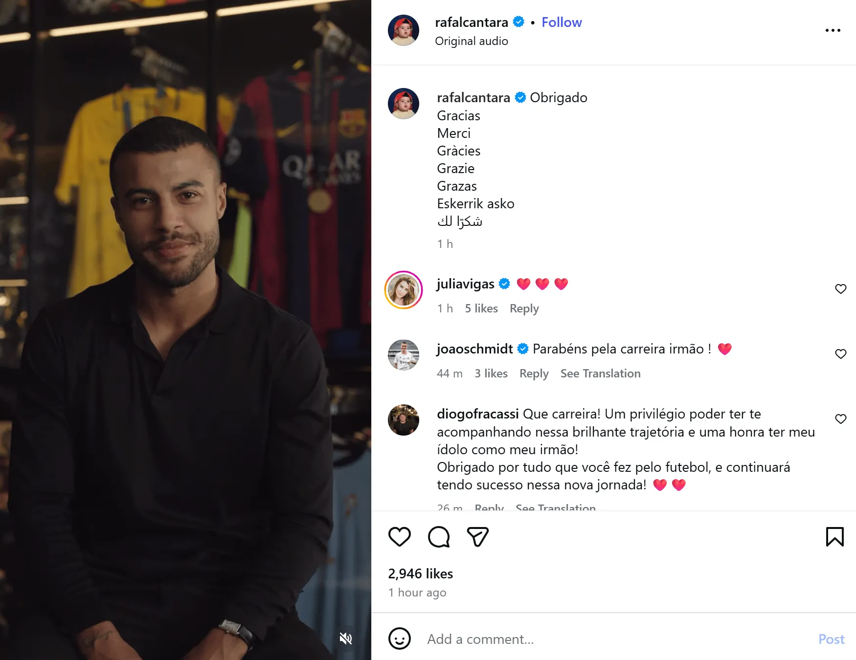 在過去20年里,足球就是我的日常生活,是我前行的動力,也是我身份的一部分。如今,一個(gè)全新的階段即將開始,雖然不再有頂級競技帶來的那種刺激,但生活依然充滿值得微笑的理由。我正在建立一個(gè)美好的家庭,它給予我無比的自豪與幸福,也在這一過程中給予了我至關(guān)重要的支持。感謝我的家人始終陪伴在我身邊,也感謝所有人的關(guān)愛與支持。感謝足球,讓我成為今天的自己。期待我們再次相見?!?/p>來源:Instagram