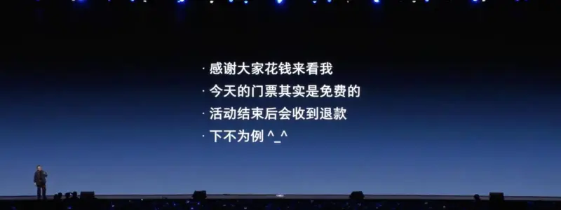 最后在大會(huì)上羅永浩表示其實(shí)本次線下不收門票錢,之后退款會(huì)原路退回,是因?yàn)闉榱撕Y選出忠實(shí)的粉絲,把那些黑粉篩選出去。