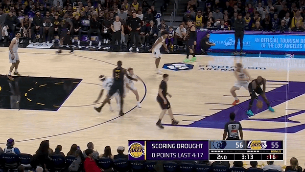 比賽第二節(jié),鐘分湖人過去4分鐘一分未得,灰熊灰熊打出一波18-0反超湖人3分。打出