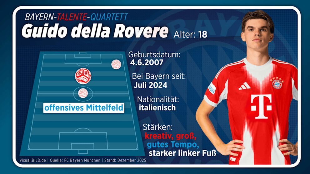 這位父親是秘魯人、母親是德國(guó)人的兒子,長(zhǎng)期以來(lái)一直是拜仁慕尼黑隊(duì)中最杰出的年輕射手之一:在2024/25賽季,他代表U19青年隊(duì)和拜仁二隊(duì)在各項(xiàng)賽事中貢獻(xiàn)了18粒進(jìn)球和13次助攻。