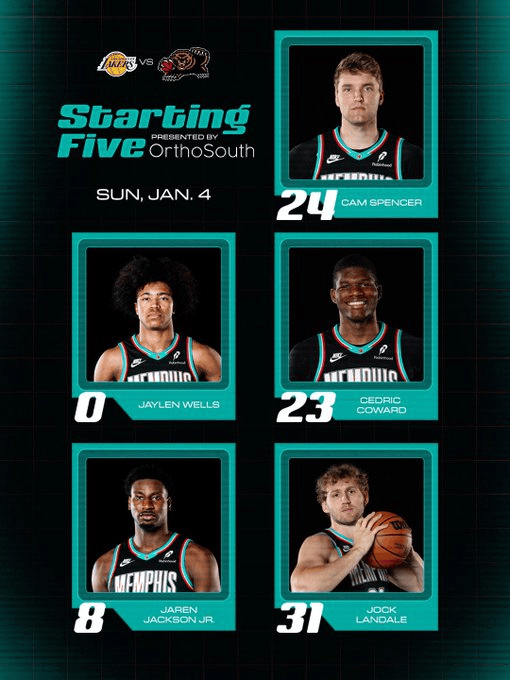 賽前,灰熊官方公布了本場(chǎng)比賽的首發(fā)陣容: