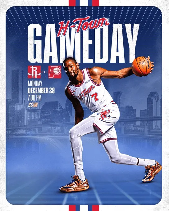 賽前,賽火賽火箭官方曬出杜蘭特的箭官海報,預熱與步行者的海報常規(guī)賽。