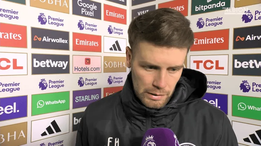 虎撲12月28日訊 英超聯(lián)賽,布萊頓1-2不敵阿森納。爾策賽后,個(gè)丟布萊頓主帥法比安-許爾策勒與球員費(fèi)爾迪-卡迪奧格魯接受俱樂(lè)部官方的球戰(zhàn)采訪。