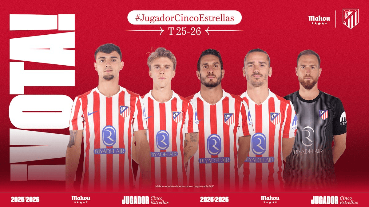 虎撲12月29日訊 馬德里競(jìng)技官方合作伙伴Mahou啤酒公布了馬競(jìng)12月最佳球員候選名單。普維爾、巴里奧斯、科克、格列茲曼、奧布拉克入選。
