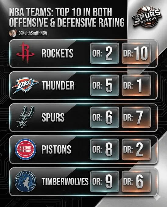 [流言板]賽季至今攻防效率值均位列聯(lián)盟前十的球隊(duì):火雷刺塞狼