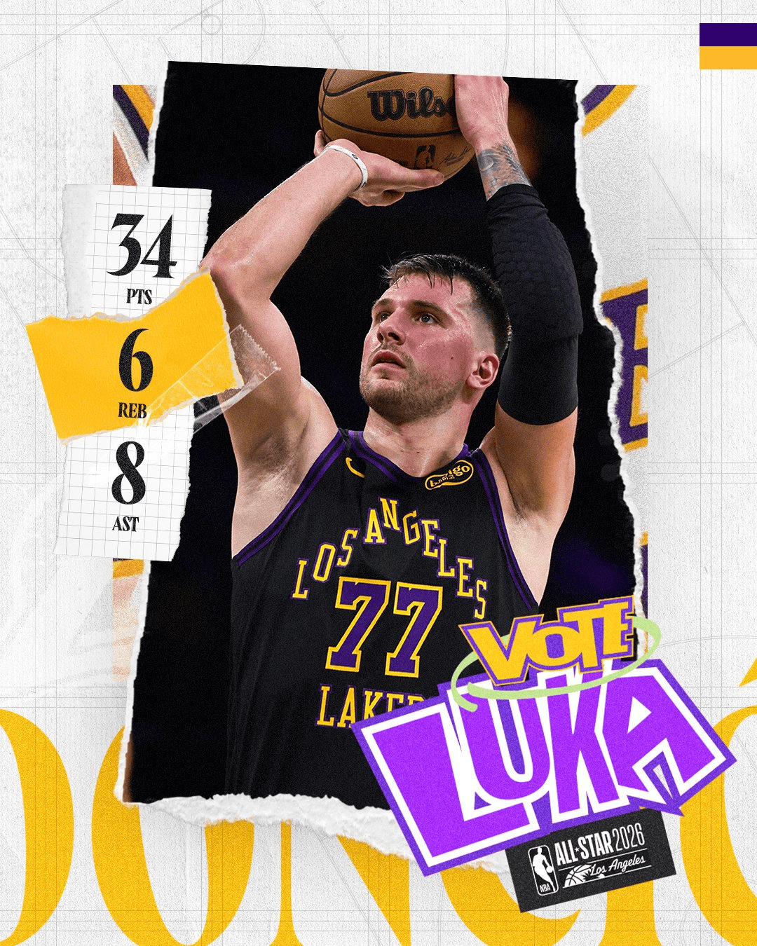 賽后,湖人官方發(fā)布東契奇數(shù)據(jù)海報,全場得到34分6籃板8助攻。