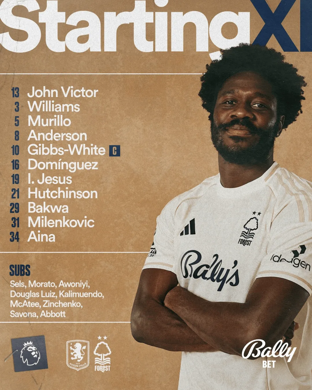 諾丁漢森林首發(fā):13-約翰-維克托、5-穆里略、31-米倫科維奇、34-埃納、3-內科-威廉姆斯、21-哈欽森、8-埃利奧特-安德森、10-吉布斯-懷特、16-多明戈斯、19-伊戈爾·熱蘇斯、29-巴卡瓦;