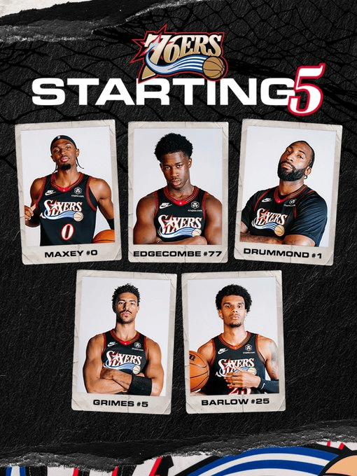 虎撲12月21日訊 76人更新官方社媒,公布了今日比賽的德埃首發(fā)陣容。