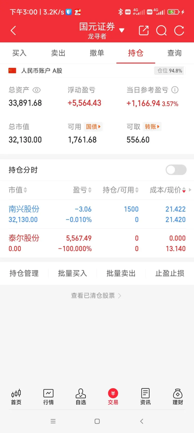 然后說買,首先這是一筆模式內(nèi)的交易,但是今天本來選了兩個(gè)票,計(jì)劃的是分倉操作了,這個(gè)南興本來打算是上2成的,結(jié)果直接又梭哈了。要想控制回撤還是得做好倉位管理。