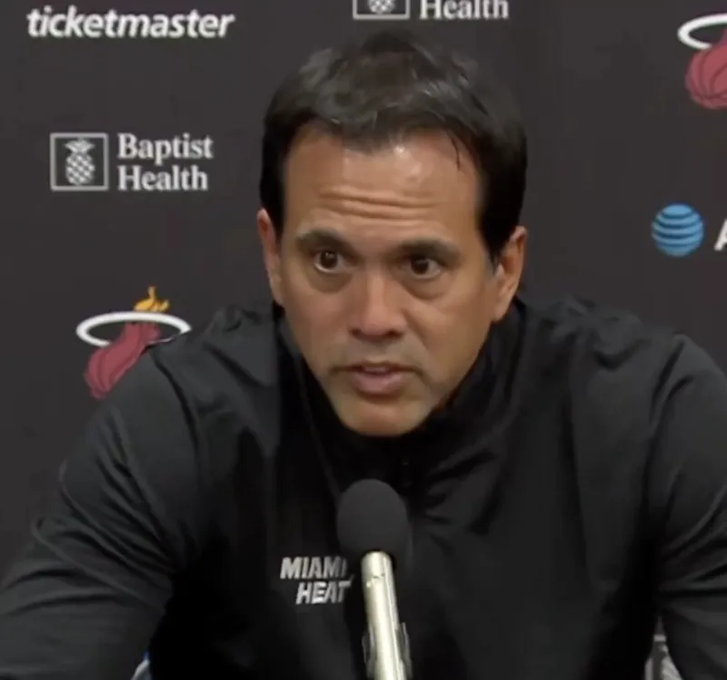 賽后熱火主帥埃里克-斯波爾斯特拉接受了記者采訪,在談到杰倫-布倫森時(shí),斯波表示:“他總會(huì)在比賽中留下自己的印記…… 這正是偉大球員的特質(zhì)…… 永不停歇,一往無前?!?/p>