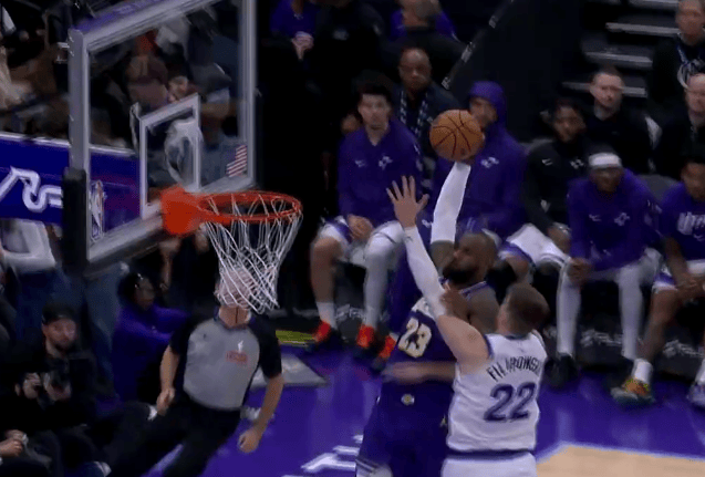 第三節(jié)比賽中,詹姆著防詹姆斯快攻接球起飛,斯快守上迎著菲利波夫斯基防守上演滑翔戰(zhàn)斧劈扣。攻接