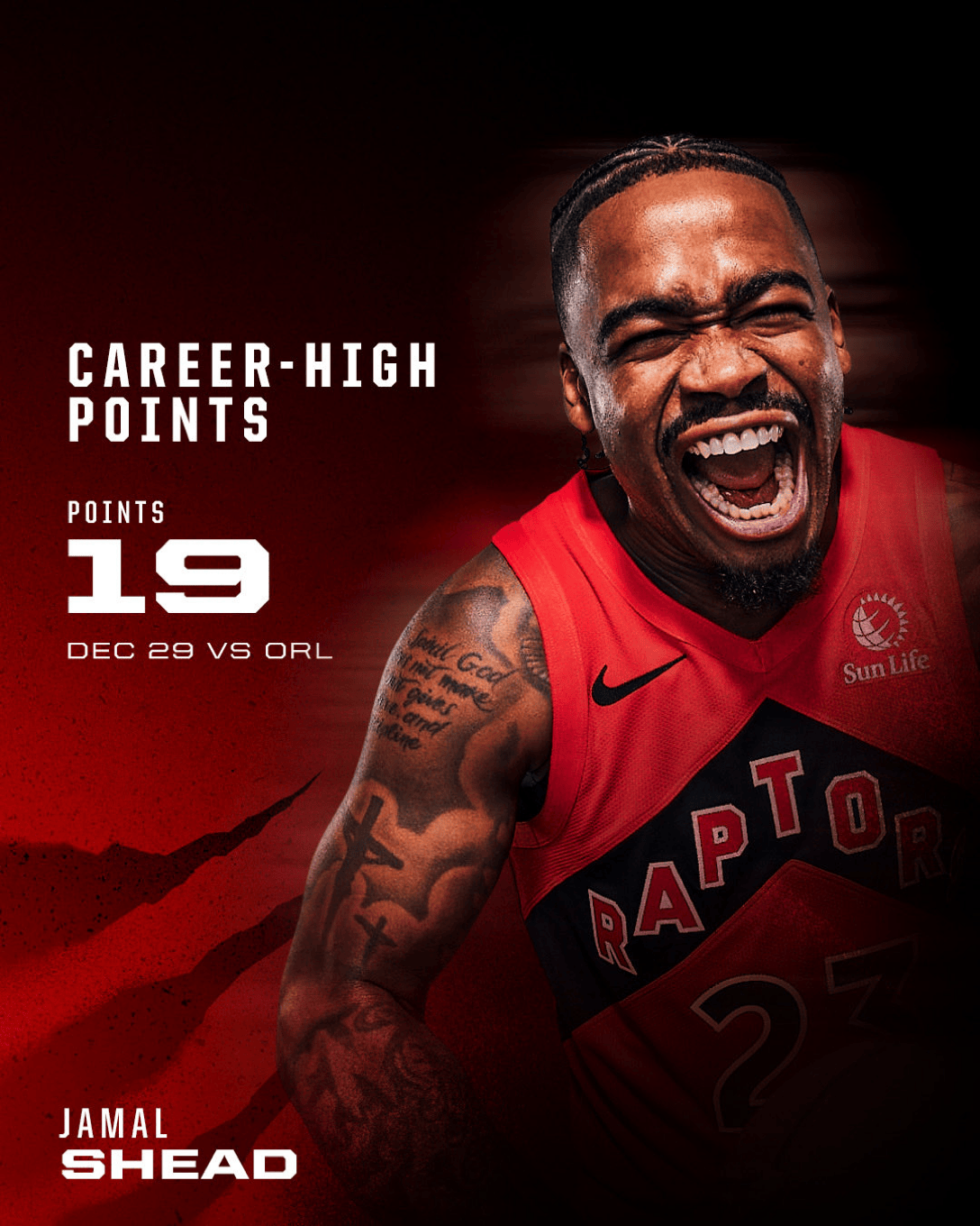 猛龍球員斯科蒂-巴恩斯本場(chǎng)比賽首發(fā)出戰(zhàn)36分鐘,全場(chǎng)12投5中,三分2中1,罰球2中2得到13分11籃板2助攻2搶斷1封蓋。賈馬爾-謝德本場(chǎng)比賽出戰(zhàn)28分鐘,得到19分4籃板5助攻。