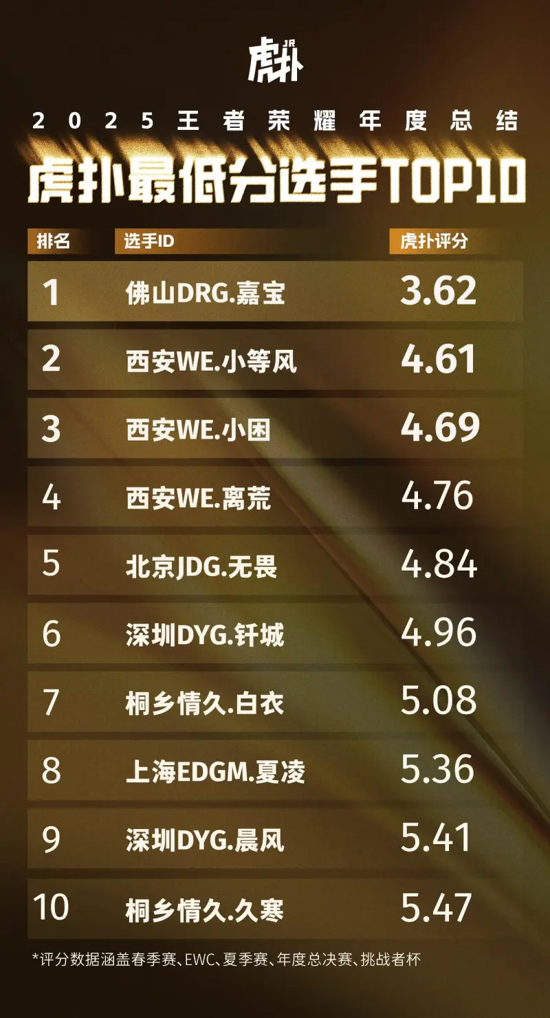 [年度總結(jié)]低分TOP10:嘉寶小等風小困前三,年度離荒無畏釬城前六由虎撲電競 發(fā)表在王者榮耀 https://bbs.hupu.com/kog