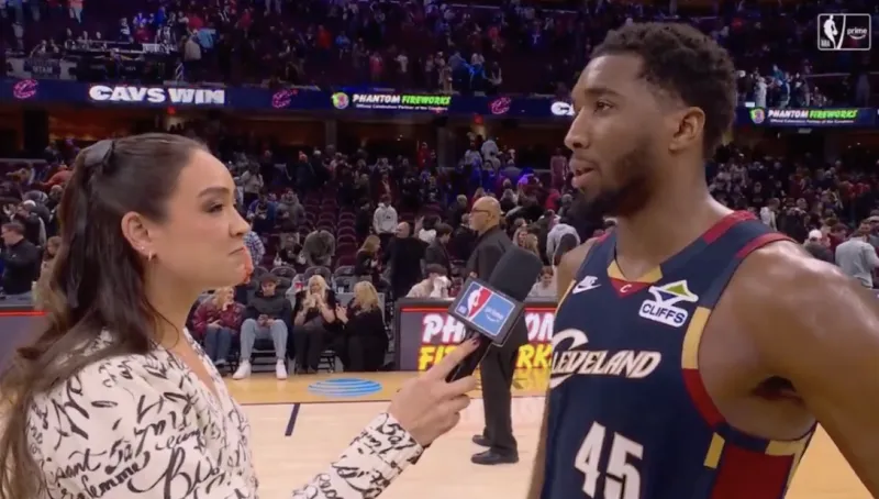 賽后,騎士球員多諾萬-米切爾接受媒體采訪,談到了本場比賽球隊的表現(xiàn)。