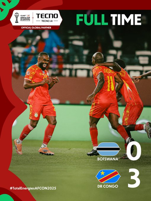 最終民主剛果3-0博茨瓦納,洲杯以小組第二的民主成績晉級淘汰賽。