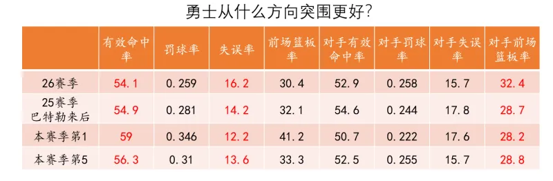 第三條路徑則是要重點(diǎn)保護(hù)好自己的籃板球,從表格中可以看到本賽季對手面對勇士時(shí)的前場籃板率高達(dá)32.4%而上賽季才28.7%、差距明顯,只要能回到上賽季的水平就已經(jīng)能夠達(dá)到聯(lián)盟前五的高水準(zhǔn)了。但是因?yàn)轸斈岬碾x開,勇士剩下的中鋒保護(hù)后場籃板的能力都偏弱,所以這條路徑顯然是要補(bǔ)充一個(gè)擅長護(hù)框和保護(hù)籃板的中鋒的,這也是近期開始出現(xiàn)勇士有意中鋒傳言的原因。