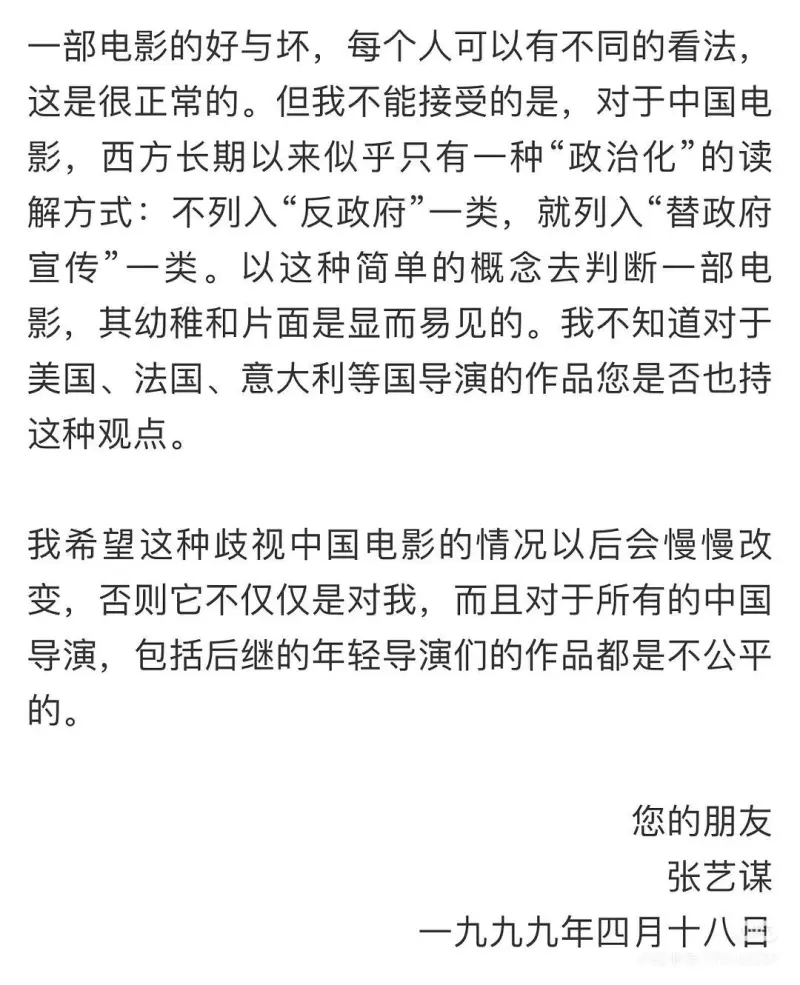 看看張藝謀的氣節(jié)和貢獻吧,某位導(dǎo)演既然把所謂的反抗弄進自己的電影里,那就來看看張藝謀對西方電影界的反抗,看看什么叫氣節(jié)!