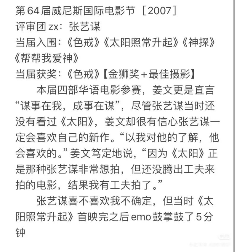 每次都說餃子、郭帆多么多么努力,刻苦,多少年多少年磨一劍。張藝謀也是啊,張藝謀是在工廠做夜班加賣血才買了一臺相機,但是膠卷太貴了,他壓根不舍得用。張藝謀就買了一本書,看了整整兩年,才明白怎么去拍東西。后來恢復(fù)高考,他年齡太大,不能去。是被人推薦才去的,他很珍惜讀書的機會,畢業(yè)后被分配到偏遠的廣西制片廠工作,他一直特別細心。而且非常珍惜機會,在吳天明的賞識下出演了《老井》,后來才開始拍電影。