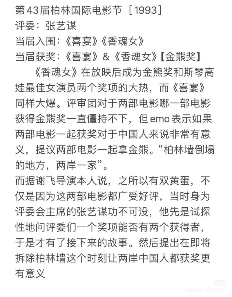 1987年他執(zhí)導(dǎo)首作《紅高粱》,拿下第38屆柏林金熊獎,這是中國影史首個三大國際電影節(jié)最高獎。1992年《秋菊打官司》助他斬獲第49屆威尼斯金獅獎,鞏俐也憑此片封后。