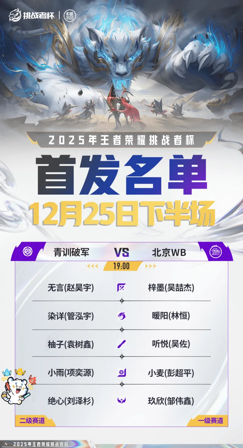 2025王者榮耀挑戰(zhàn)者杯雙敗淘汰賽D4【首發(fā)名單】送達 !俞暖陽對