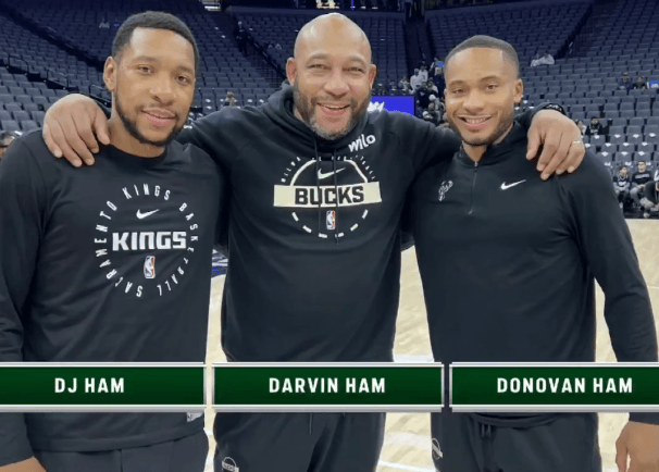 達(dá)爾文-哈姆作為雄鹿的日和助理教練,他的個兒大兒子DJ-哈姆是國王的球員發(fā)展主管教練,他的同場小兒子多諾萬-哈姆是雄鹿的球員發(fā)展助理教練。