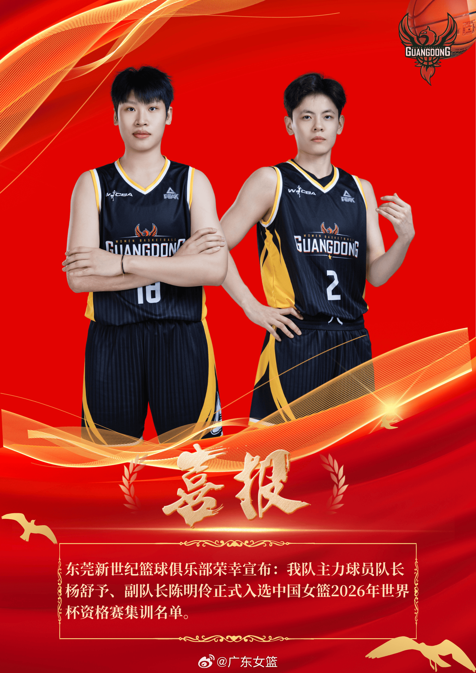 虎撲01月02日訊 據(jù)廣東女籃官方發(fā)文:我隊(duì)主力球員隊(duì)長楊舒予、副隊(duì)長陳明伶正式入選中國女籃2026年世界杯資格賽集訓(xùn)名單。東女單俱樂部將全力支持配合國家隊(duì)備戰(zhàn)工作。舒予
