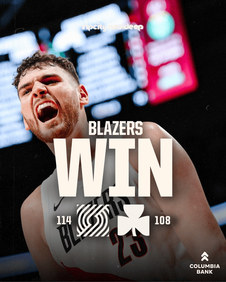 賽后,開拓者官方發(fā)布贏球海報,克林根怒吼瞬間成為封面!