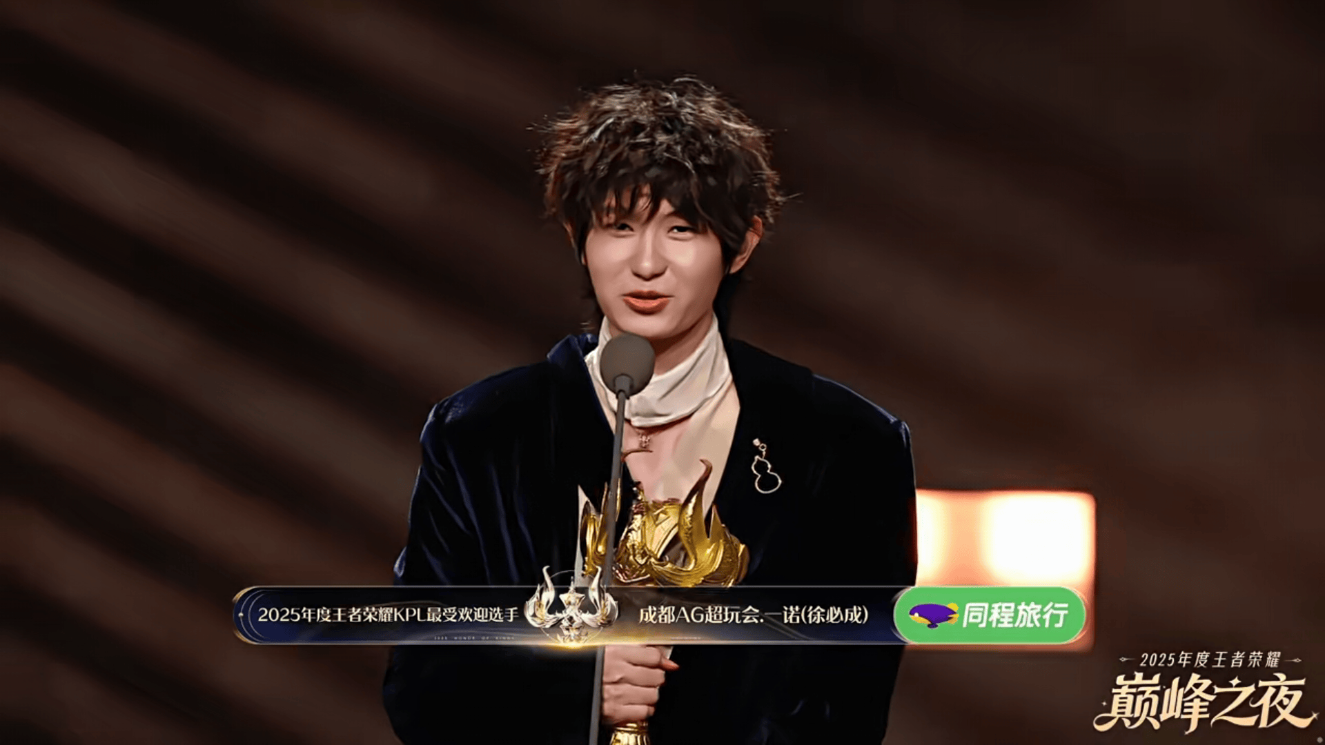 恭喜一諾(徐必成)獲得【2025年度王者榮耀最受歡迎選手】!度王