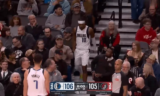 [流言板]布威救球沖向觀眾席,獨行俠還剩6分鐘反超開拓者1分