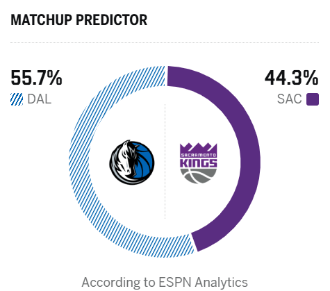 [流言板]ESPN預(yù)測(cè)明日比賽:獨(dú)行俠勝率55.7%,國王勝率44.3%