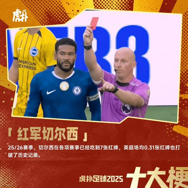 25/26賽季,切爾西在各項(xiàng)賽事已經(jīng)吃到7張紅牌,英超場均0.31張紅牌也打破了歷史記錄。