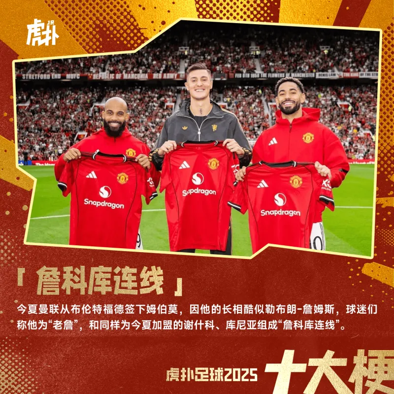 今夏曼聯(lián)從布倫特福德簽下姆伯莫,因他的長相酷似勒布朗-詹姆斯,球迷們稱他為“老詹”,和同樣為今夏加盟的謝什科、庫尼亞組成“詹科庫連線”。