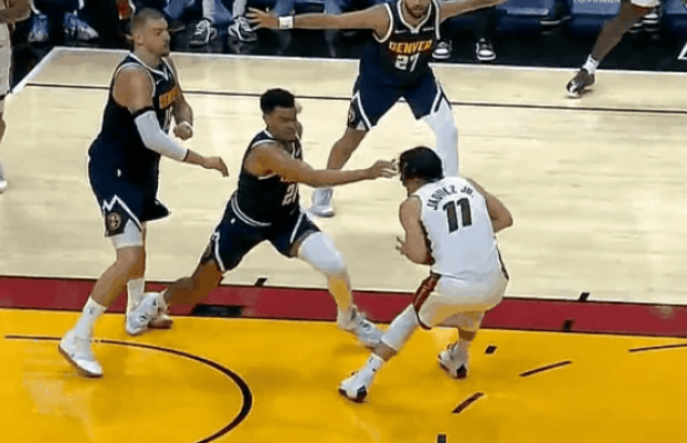 第二節(jié)比賽,約基奇被隊(duì)友意外踩到腳部痛苦倒地,隨后一瘸一拐走出球場(chǎng)。