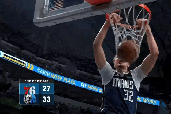 虎撲01月02日訊 NBA常規(guī)賽,獨(dú)行俠對(duì)陣76人的劈扣比賽正在進(jìn)行中。