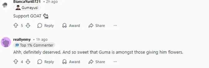 啊,絕對實至名歸。而且Guma也在給Keria送花,真是太暖了。