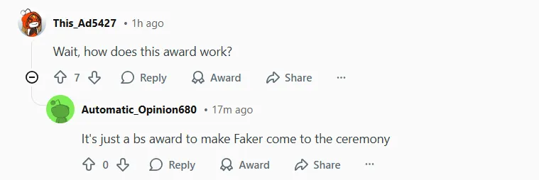 這純粹是個很扯的獎,目的就是為了把Faker騙來參加頒獎典禮。