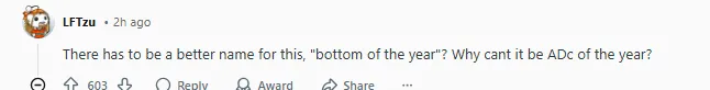 這個獎項肯定有更好的名字,"年度最佳Bottom"?為什么不能是"年度最佳ADC"?