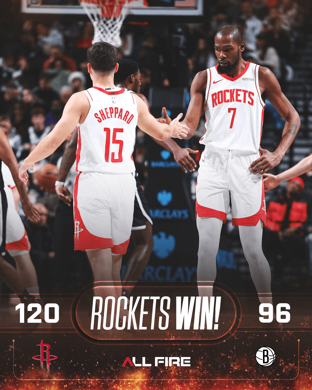 虎撲01月02日訊 今日NBA常規(guī)賽,火箭120-96擊敗籃網(wǎng)。勝火