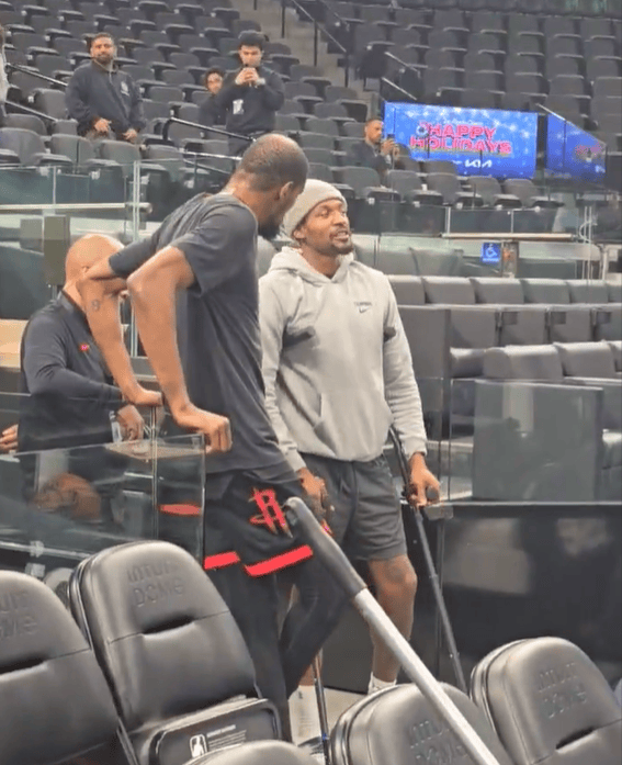 比爾與凱文-杜蘭特曾在2023-24賽季和2024-25賽季共同效力于太陽(yáng)。寒暄