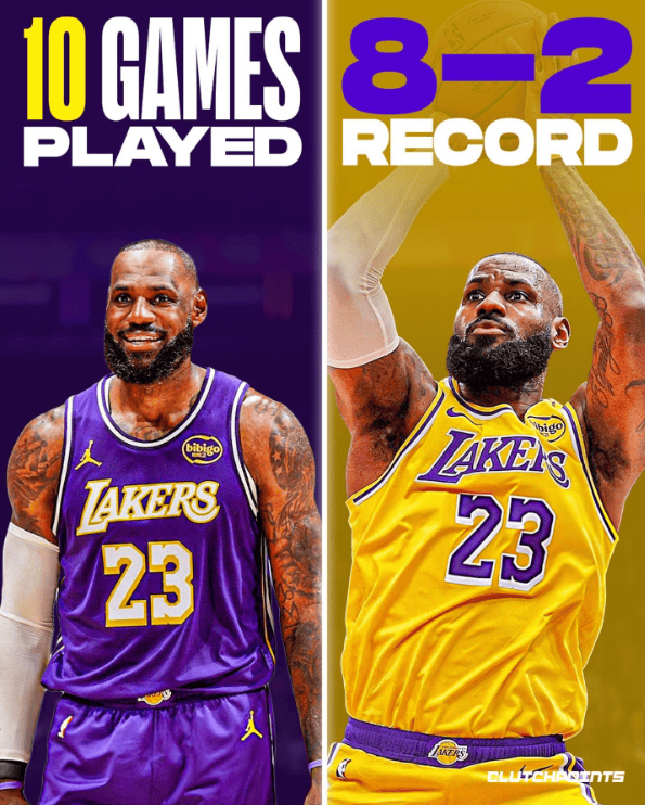 在本賽季詹姆斯復(fù)出的場均10場比賽中,湖人取得了8勝2負的板勝戰(zhàn)績。